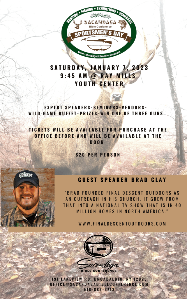 November 17, 2022 by Sacandaga Bible Conference Sportsmen’s Day Share this: Click to share on X (Opens in new window) X Click to share on Facebook (Opens in new window) Facebook